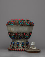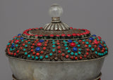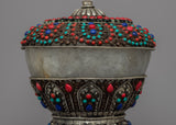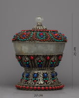 Look at the beautiful Dhupur Rice Pot, a combination of creativity and usefulness. It is a representation of lavishness and tradition that is made of crystal stone, and copper, and embellished with silver plating.