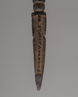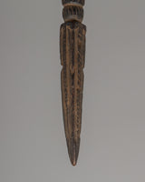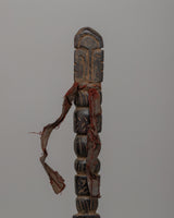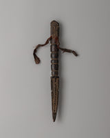 The Ritual Dagger Phurba is an essential item for Tibetan spiritual activities. It is made of wood and is used for protection and energy transformation. This 24.5 cm tall and 2.5 cm wide dagger is used in ceremonies to call tremendous energies, clear bad forces, and create a sacred place. The wood contains inherent grounding energy, making it an excellent partner for spiritual activity and meditation.