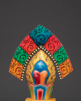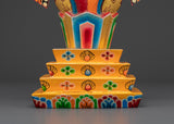 Crafted from wood and painted with vivid acrylic colors, this 26cm tall Torma is both a spiritual object and a vibrant piece of Buddhist art. Each piece is carefully shaped to resemble traditional butter sculptures, embodying centuries of ritual precision. Perfect for practitioners, monks, or spiritual collectors, this Torma enhances devotion, focus, and intention in every ritual.