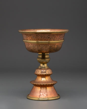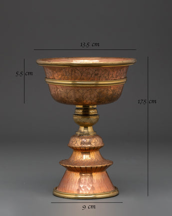 The elegant copper and gold Coating add a touch of sacred beauty to your altar or spiritual space. These butter lamps hold great spiritual significance and are often used in Tibetan Buddhist rituals to offer light, peace, and positive energy. Whether you're performing rituals or simply seeking a meaningful spiritual decoration, this butter lamp set will enhance your practice and home environment.