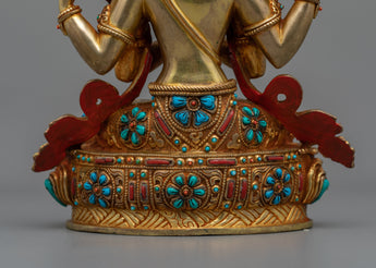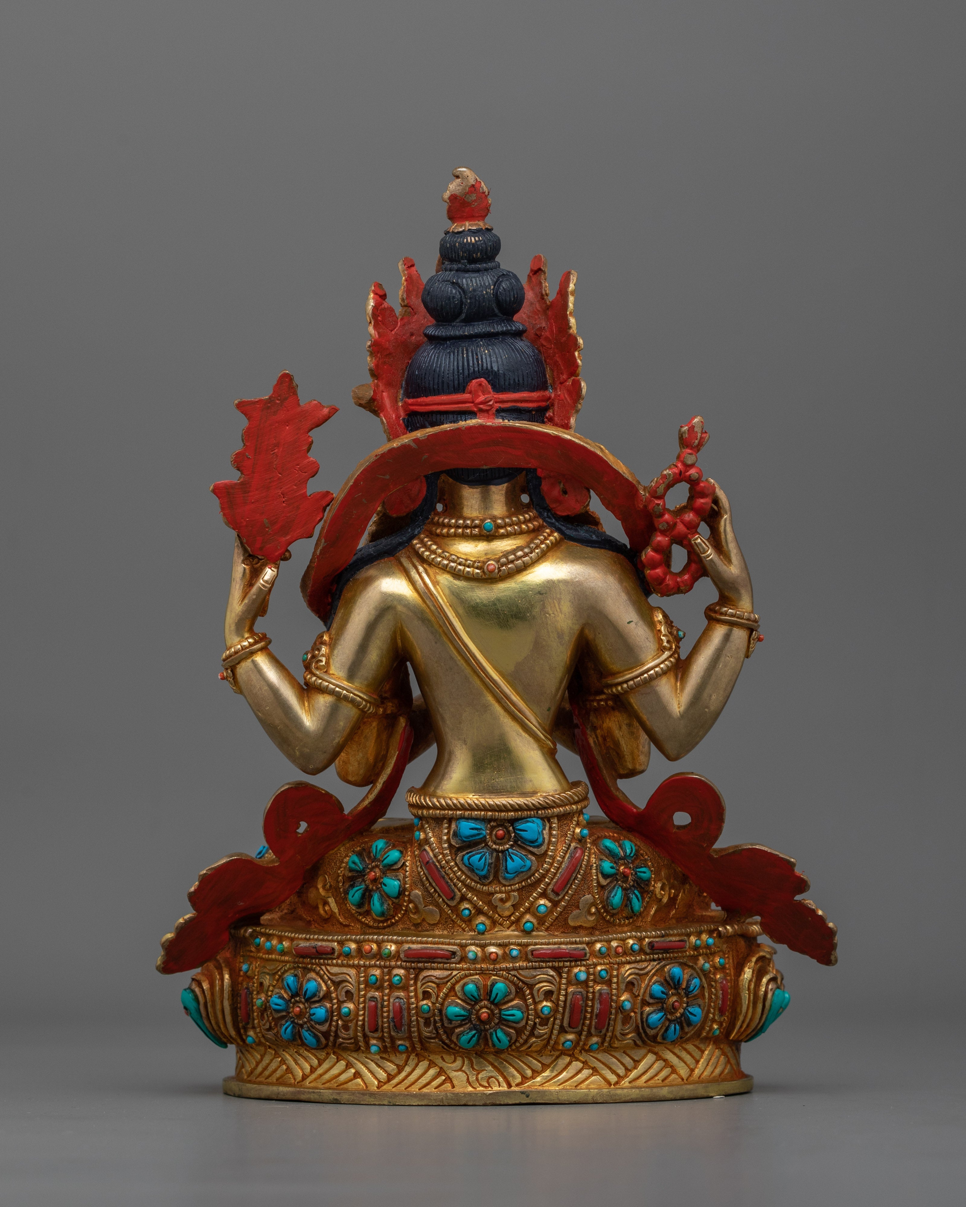 Sacred Chenrezig Buddha Statue | 24K Gold Gilded Avalokiteshvara with Hand Carved Gemstones