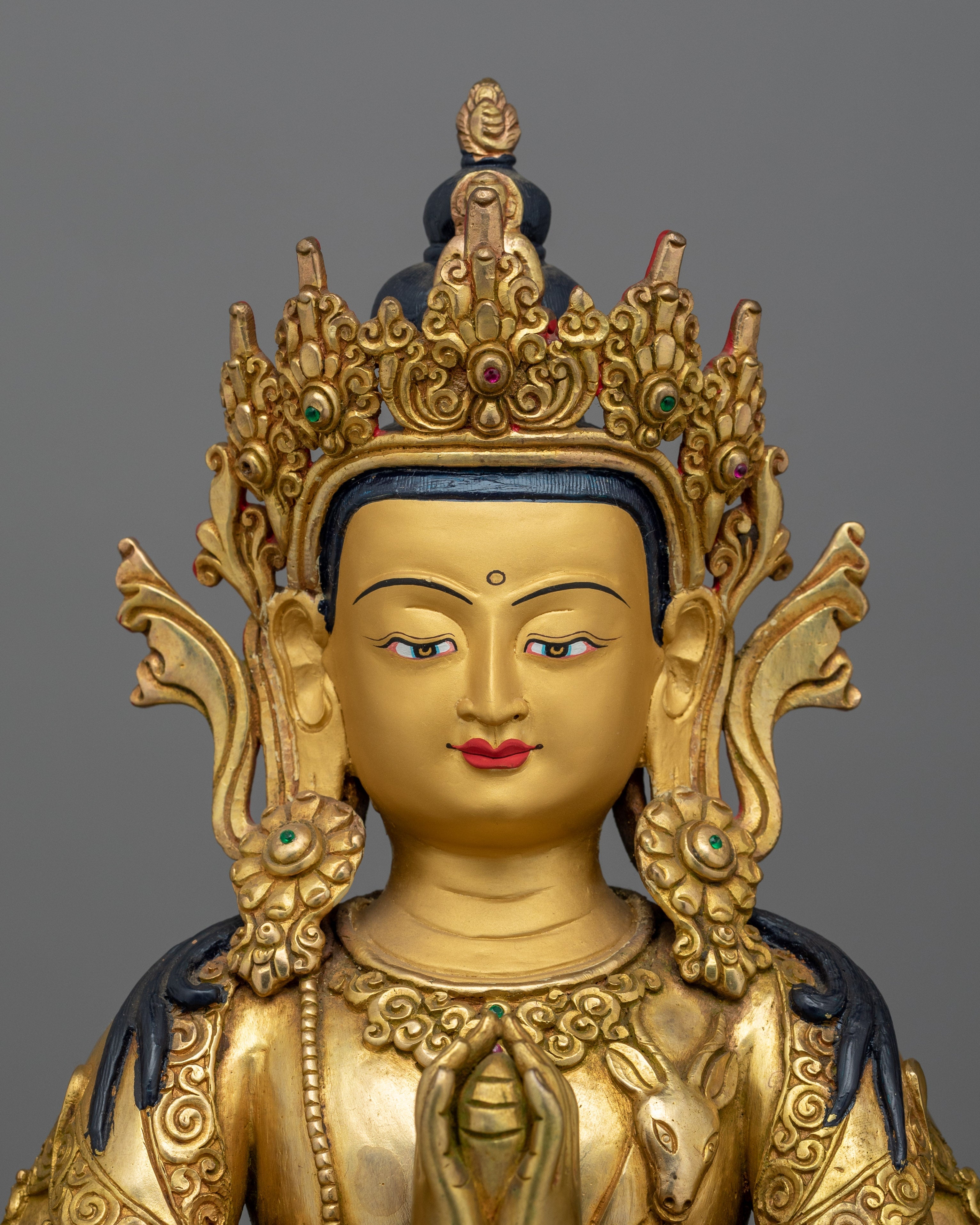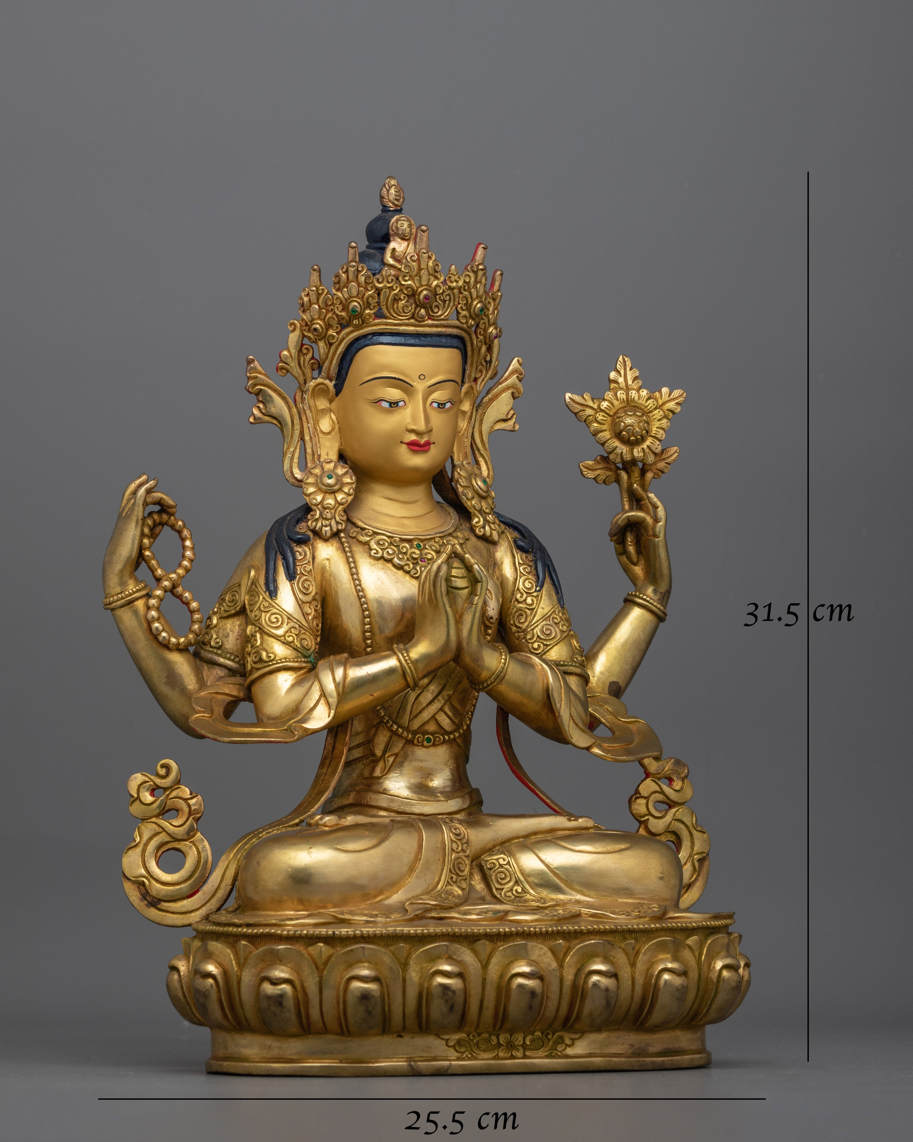 Sacred Chenrezig Buddha Statue | 24K Gold Gilded with Gemstone