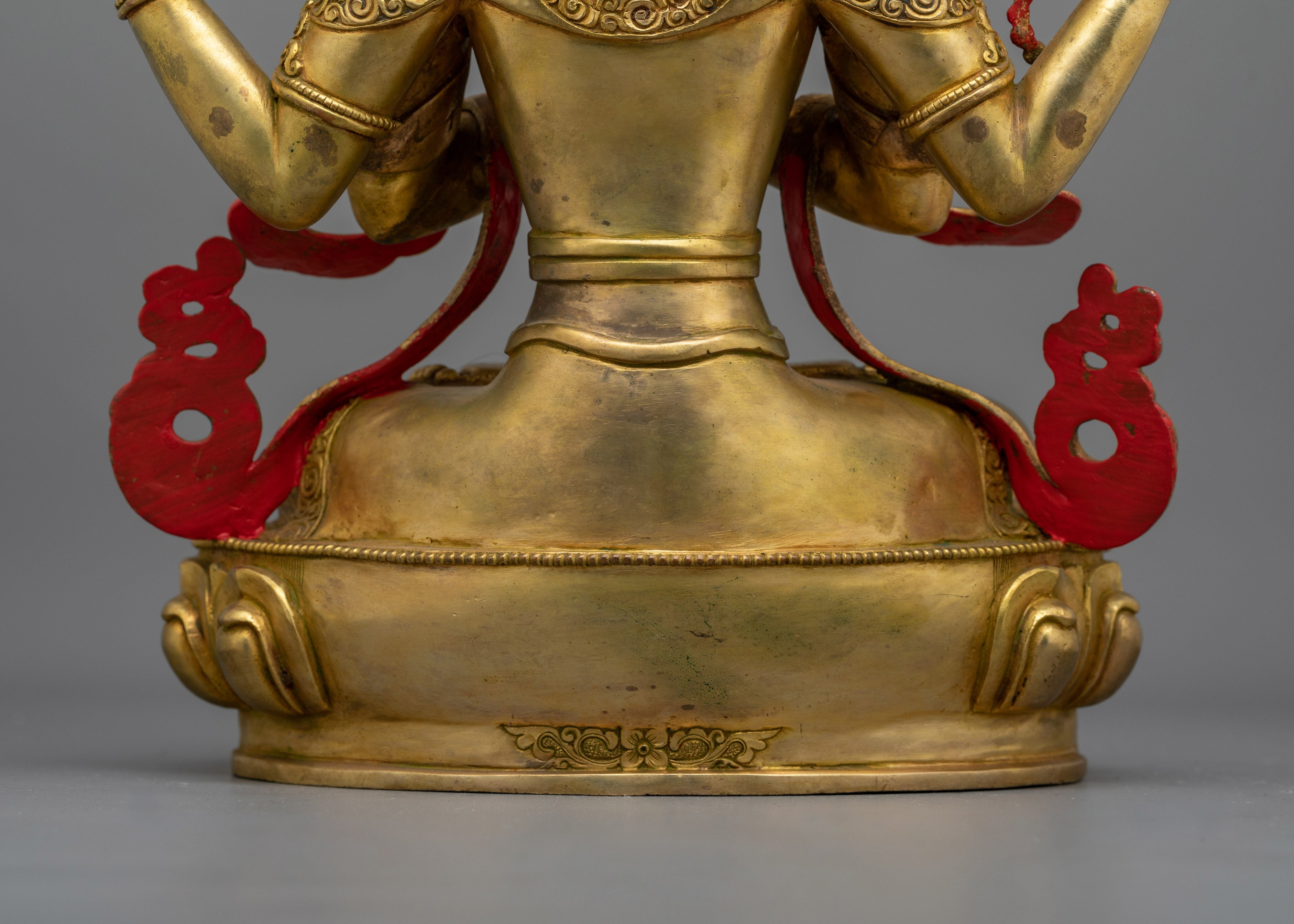 Elegant Chenrezig Buddha Statue | 13.8-inch 24K Gold Gilded Copper Sculpture