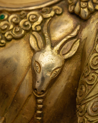 Chenrezig, a symbol of global compassion, is seen in a pose of calm elegance, representing his unlimited love and mercy. His presence is a profound reminder of the unlimited compassion that can guide and encourage us as we face life's obstacles.