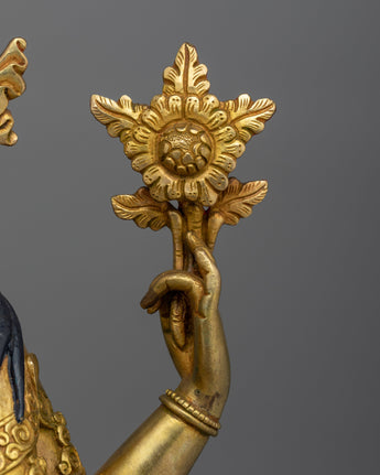 The sacred Chenrezig Buddha statue, created with beautiful 24K Gold Gilding, has a bright finish that showcases Chenrezig's calm face. Gold and acrylic paintings highlight the appealing features, lending depth and vitality to the statue's look. This sculpture, adorned with gemstones that gleam with spiritual energy, is not only a gorgeous marvel but also a focus point for meditation and devotion. The Copper Body is both durable and elegant, guaranteeing that this statue will be a treasured addition to your spiritual space for years to come.