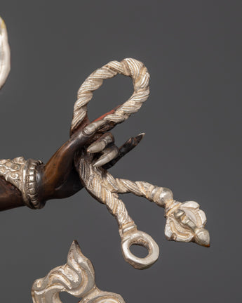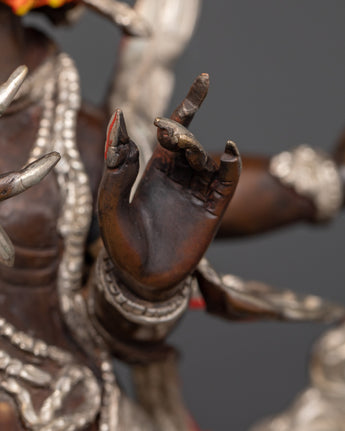 The Sacred Four-Armed Mahakala Statue, weighing 4.64 kg, commands attention and would make an excellent addition to any altar, meditation area, or holy location. The Sacred Four-Armed Mahakala Statue is a strong reminder of the protection energies that accompany practitioners on their spiritual journeys.