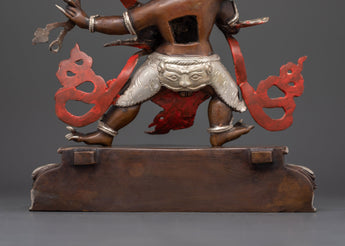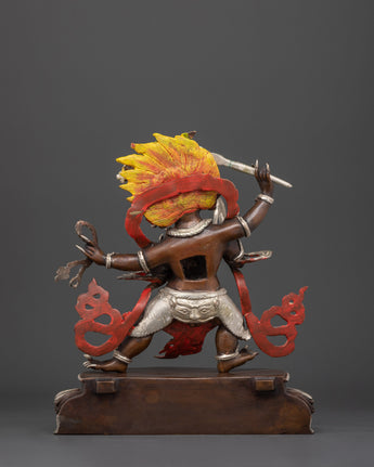 Sacred Four-Armed Mahakala Statue | Oxidized Copper Body with Acrylic Paintings