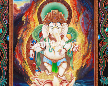Radiant Ganesh Artwork | Thangka for Home Altar & Meditation