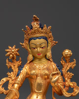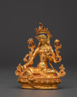 Sacred Green Tara Buddha Statue | Handcrafted Gold-Plated Copper Art