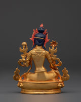 The Sacred Green Tara Buddha Statue is a stunning representation of compassion and protection, and a revered figure in the Tibetan Buddhist tradition. Handcrafted from copper and elegantly gold-plated, this stunning item is 10.5 cm in height and 9 cm in breadth. Green Tara, also known as the "Mother of Liberation," is commonly associated with healing and conquering fear. This statue serves as a poignant reminder of her kindness, bringing serenity, protection, and spiritual growth into your home or altar. The religious Green Tara Buddha, whether put in a meditation space or as part of your religious décor, exudes peace.