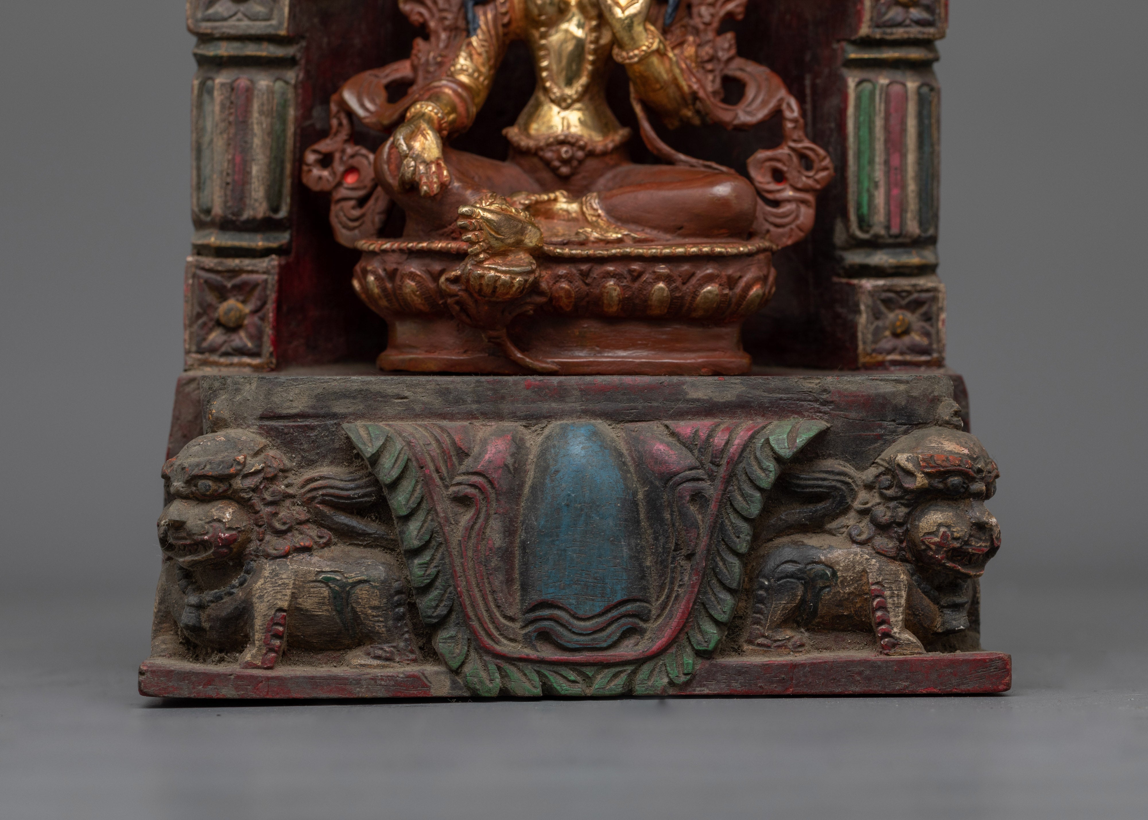 Sacred Green Tara Statue with Throne | Emblem of Compassion and Protection