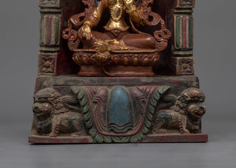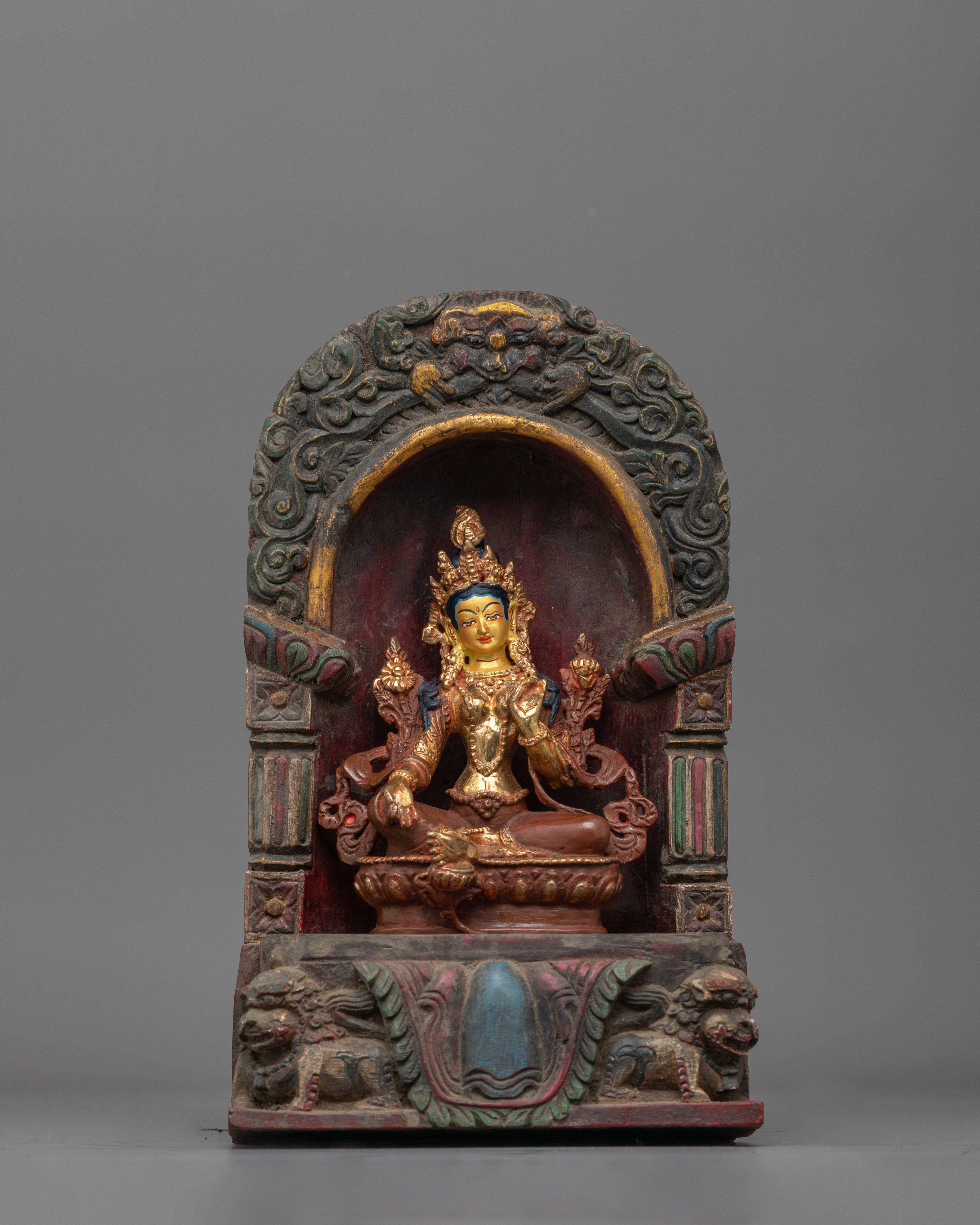 24K Gold Gilded Sacred Green Tara with Throne for Spiritual Sanctity