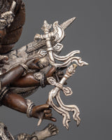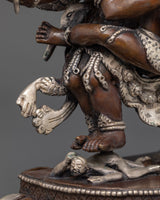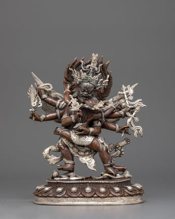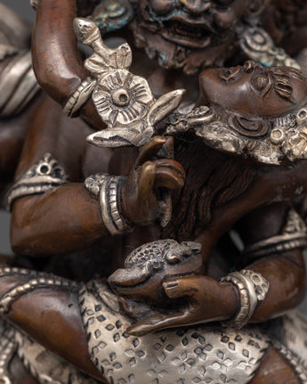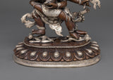 Sacred Hayagriva Statue with Consort | Oxidized Copper and Silver-Plated Sculpture