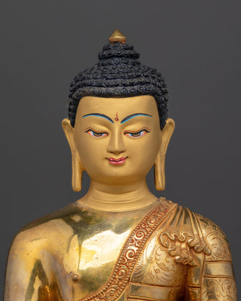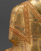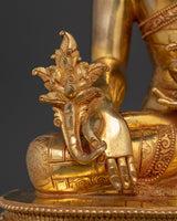 This Sacred Medicine Buddha Statue, made of copper and adorned with 24K gold gilded, gold, and acrylic paintings, emanates a forceful yet relaxing presence. Its flawless workmanship and brilliant colors symbolize the Medicine Buddha, venerated in Buddhist tradition as the ultimate healer.