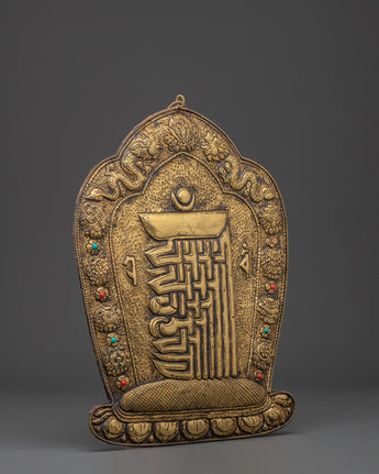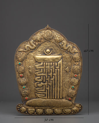 The Sacred Ritual Wall Hanging is a stunning embodiment of traditional Tibetan craftsmanship, blending deep spiritual symbolism with intricate artistic detail. Measuring 40cm by 30cm and weighing 1.04kg, this piece features vibrant turquoise and coral stones, thoughtfully embedded into a brass frame, to enhance both its visual appeal and spiritual energy. Made with artificial stones, including turquoise and coral, the materials used elevate the overall design while maintaining authenticity. Perfect for any space, it creates a calming and powerful atmosphere that invites peace and mindfulness. Whether displayed in a home, meditation room, or sacred space, this wall hanging serves not only as a beautiful decorative element but also as a meaningful symbol of Tibetan ritual traditions. Its exceptional design, crafted from brass and adorned with artificial turquoise and coral stones, and spiritual significance make it an ideal addition for those seeking to enrich their environment with authentic cultural artistry and serene energy.