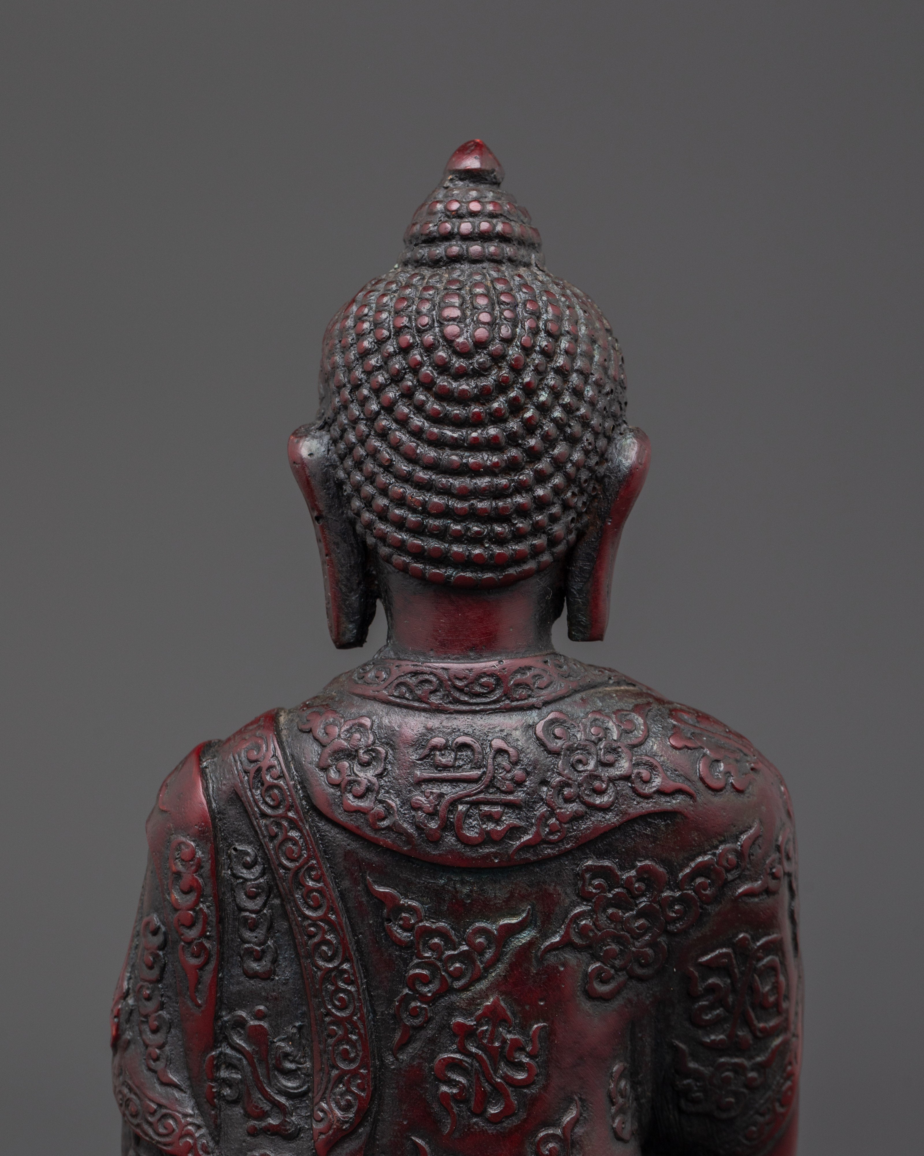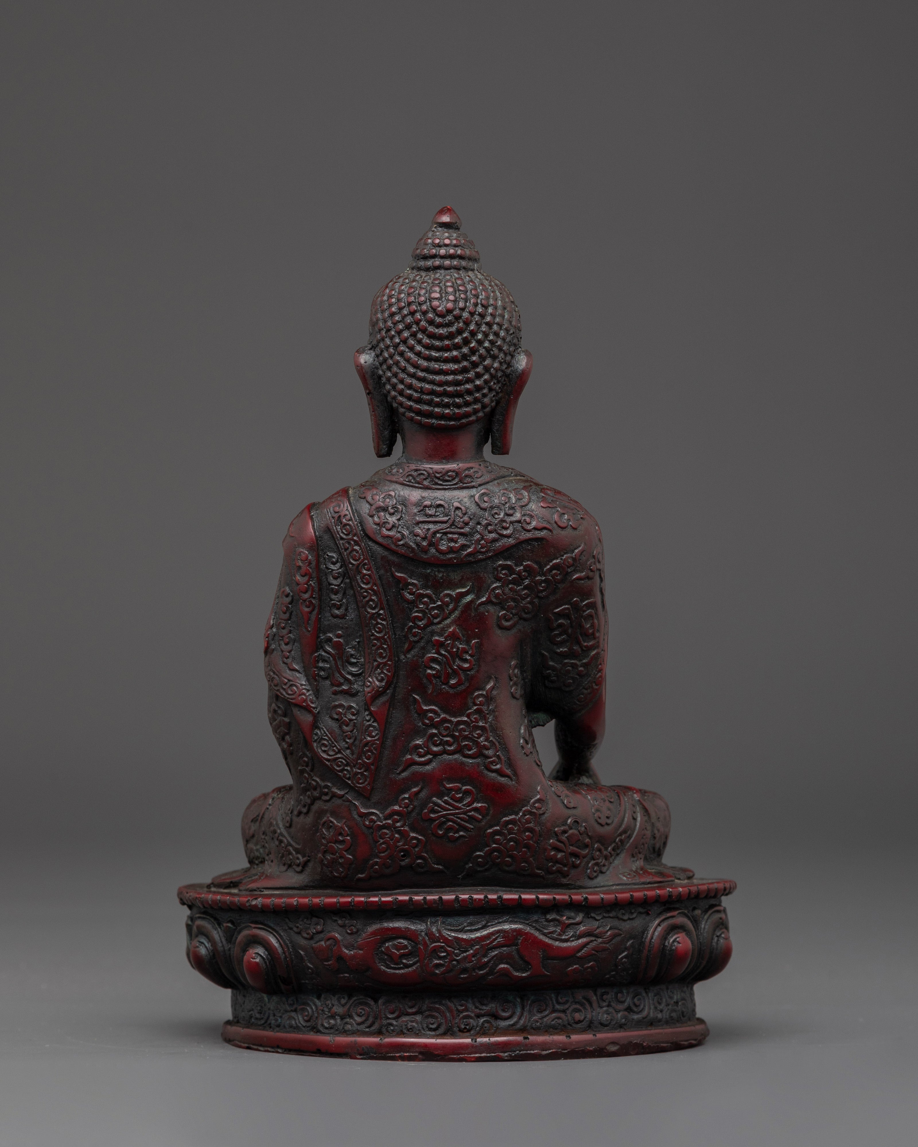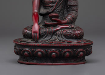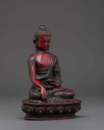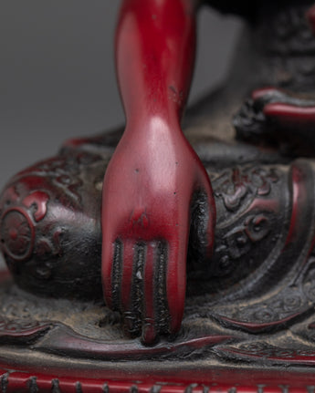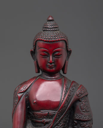 Sacred Shakyamuni Buddha Sculpture | Ceramic Red Buddha Statue for Meditation