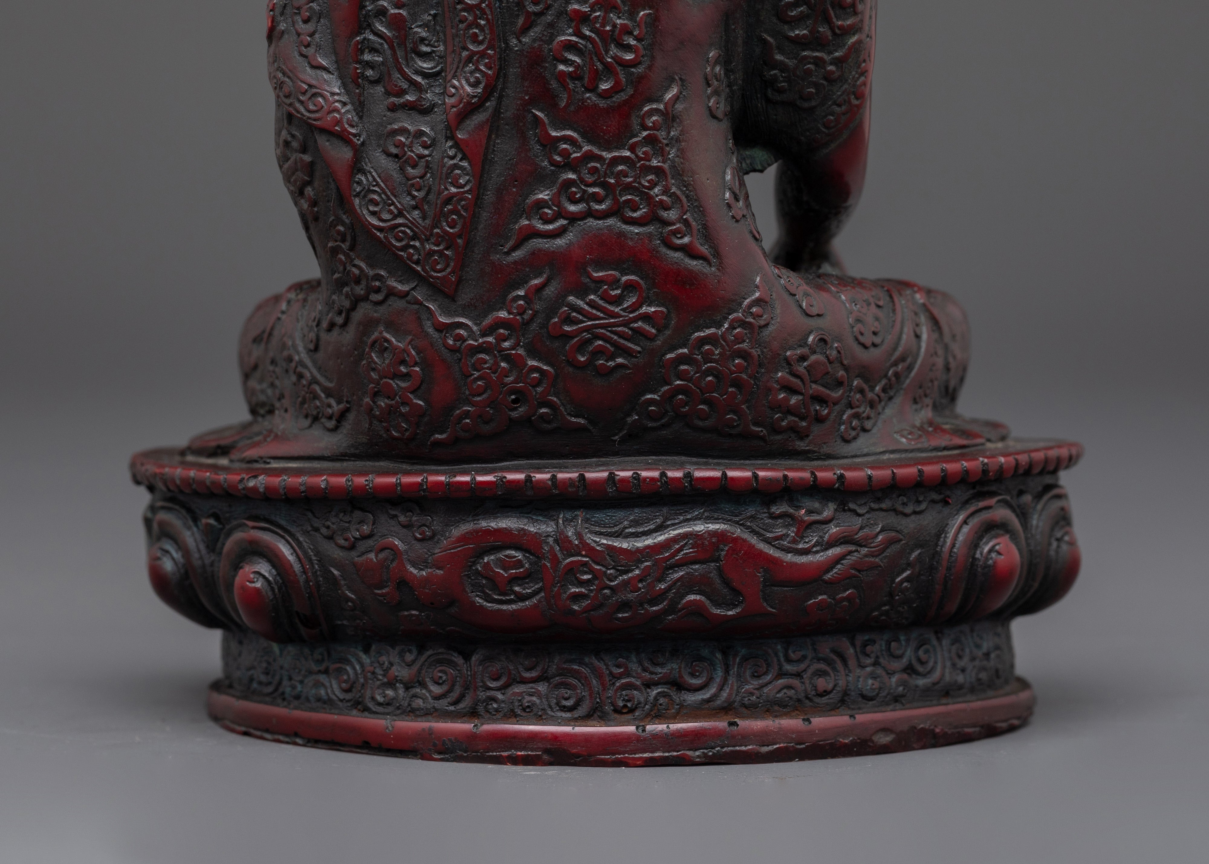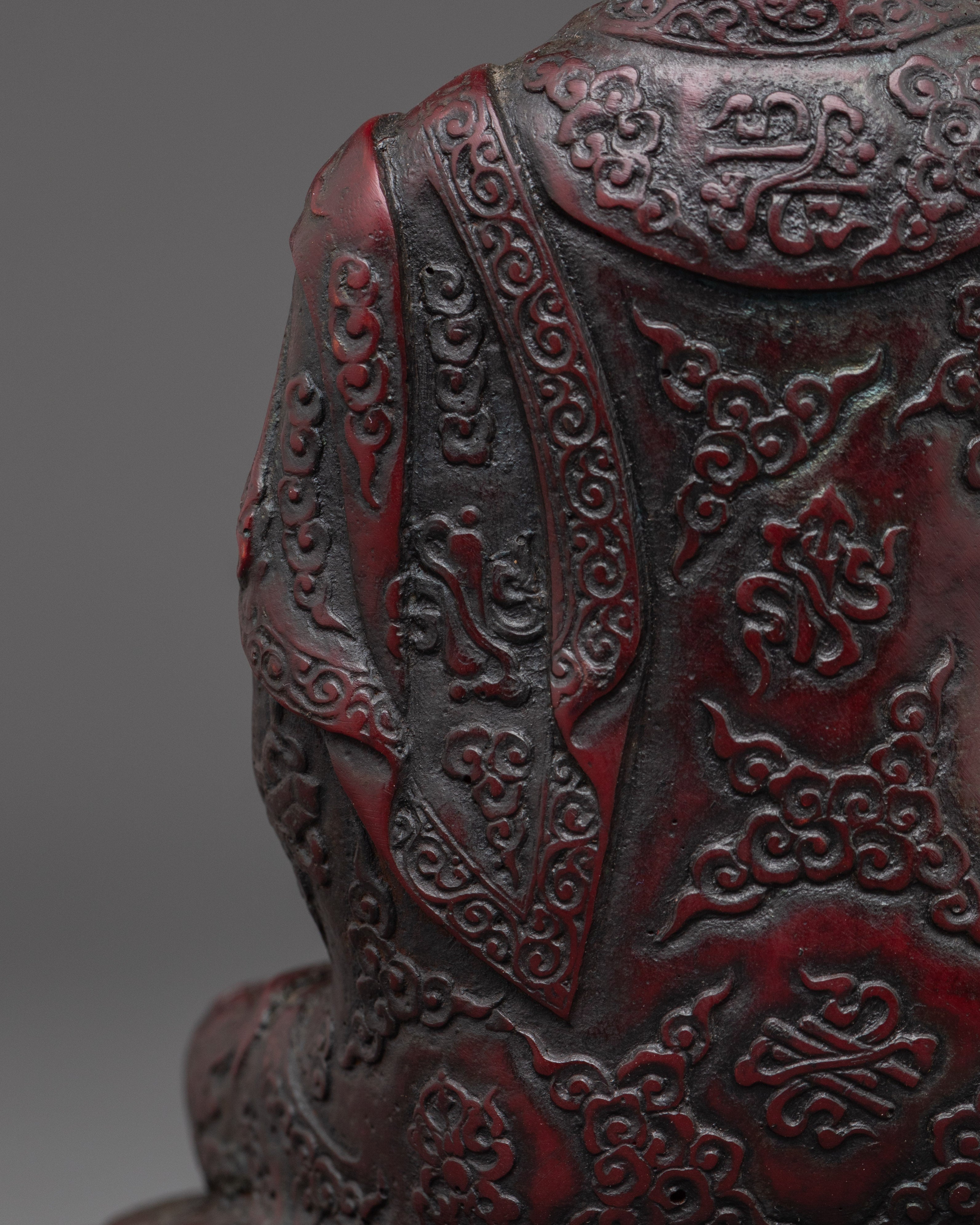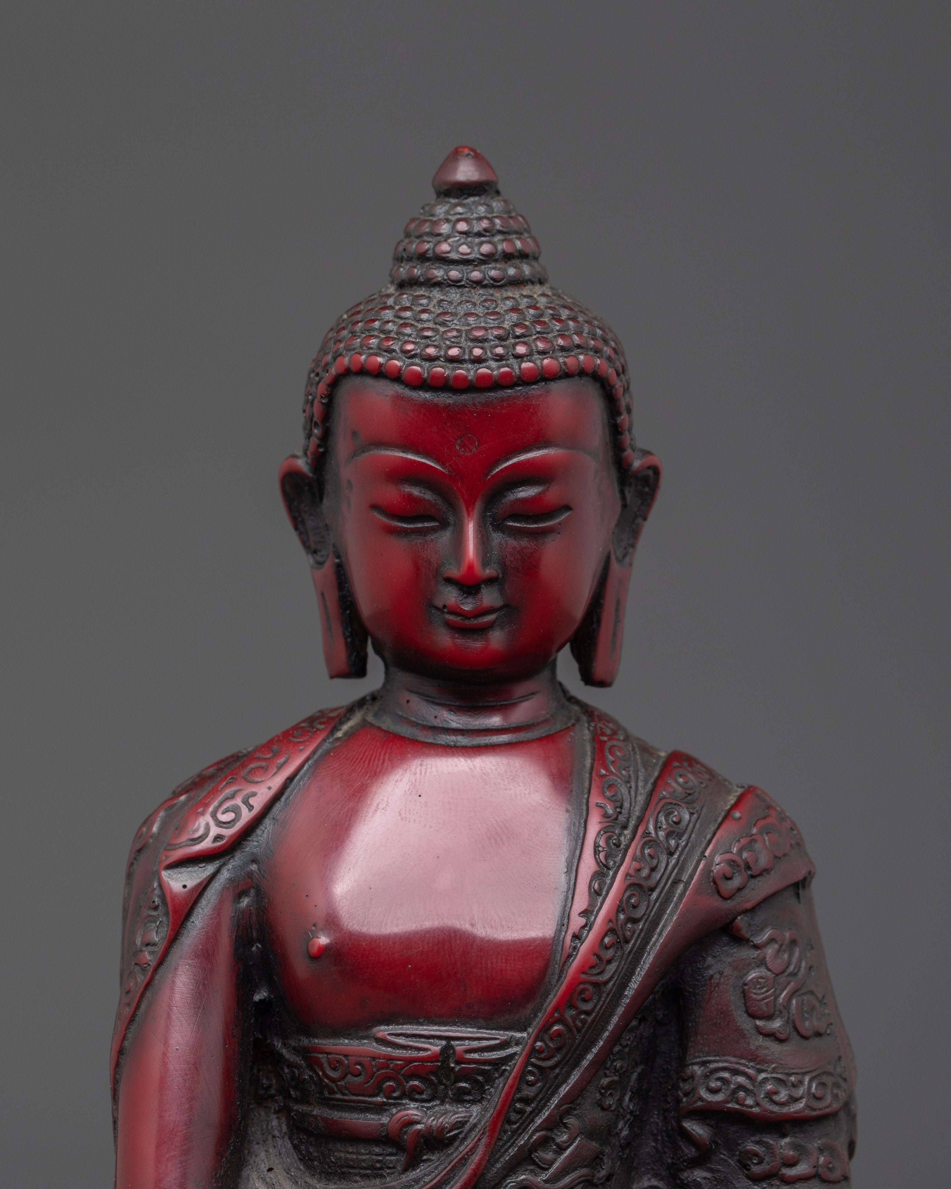 Sacred Shakyamuni Buddha Sculpture | Ceramic Red Buddha Statue for Meditation