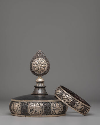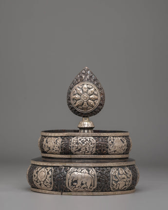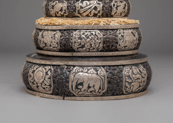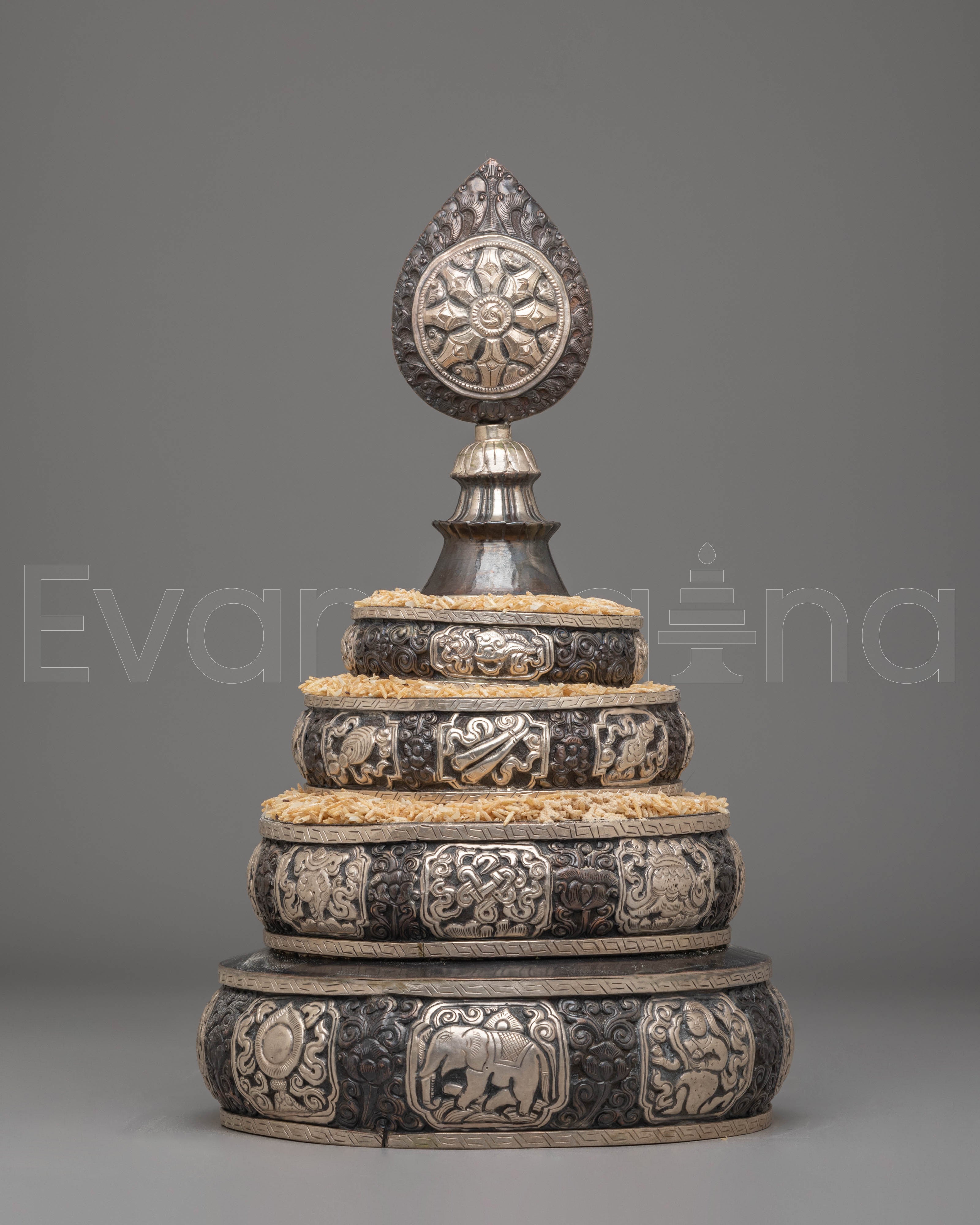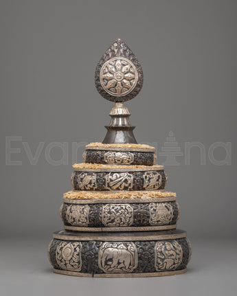 This exquisite mandala showcases traditional Tibetan artistry, with every detail meticulously crafted to represent harmony and balance. The electro-silver plating adds an elegant touch, while the vibrant acrylic colors create a captivating visual experience. Perfect for display in your meditation space or as a unique addition to your home decor, this mandala brings beauty and serenity wherever it is placed. Whether used for meditation or simply admired as a work of art, it will inspire mindfulness and spiritual growth in your daily life.