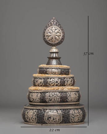 The Sacred & Spiritual Tibetan Mandala is a stunning work of art, designed to enhance your meditation practice and bring a sense of peace and tranquility into your home. Measuring 37cm tall and 22cm wide, this beautifully crafted mandala features intricate patterns and symbols, all made from copper and electro-silver plated for a bright, reflective finish. Ideal for those seeking a deeper connection with their spiritual journey, it serves as both a decorative piece and a powerful meditation tool, helping you focus your mind and connect with your inner self.