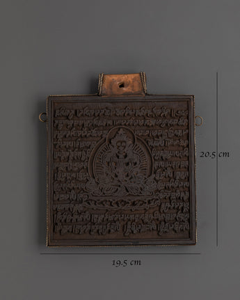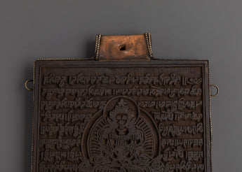Crafted by skilled artisans, the copper frame of this sacred stamp highlights intricate details that connect deeply with Tibetan culture and spirituality. The wood used in its construction enhances both the beauty and the energetic presence of the piece, making it a unique and meaningful addition to your spiritual collection. This sacred stamp is not only a stunning decorative object but also a powerful tool for rituals, meditation, and invoking blessings. Its rich symbolism and craftsmanship make it an ideal gift for anyone practicing Tibetan or Buddhist traditions, offering a tangible connection to ancient spiritual wisdom and peace.