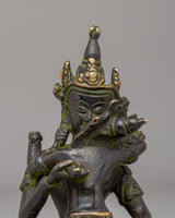 The Vajrasattva and Consort Statue is a handcrafted bronze statue, standing 14 cm tall and 9 cm wide, weighing 0.81 kg. This statue features Vajrasattva, the embodiment of purity and spiritual transformation, depicted alongside his consort. Known for their deep connection in Tibetan Buddhist teachings, Vajrasattva represents the power of purification and enlightenment, while his consort symbolizes wisdom and the union of compassionate energy. The craftsmanship and intricate details of this statue make it a for any spiritual space, perfect for meditation altars, temples, or as a meaningful gift.