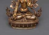 Sacred White Tara Buddha Statue | Antique Finished Gold Gilded Copper Sculpture