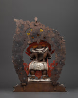 Sakya Mahakala Silver Plated Oxidized Copper Statue | Guardian of the Dharma