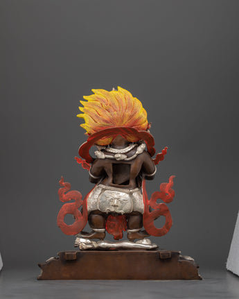 The combination of brilliant colors and fine design highlights Sakya Mahakala's spiritual characteristics. The silver coating enhances the statue's aesthetic appeal while also representing the deity's celestial essence. This statue is appropriate for people looking to imbue their surroundings with spiritual strength and protection, making it an excellent addition to homes or meditation areas.