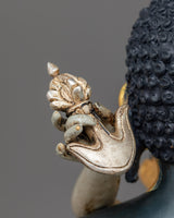 The Samantabhadra with Consort Sacred Buddhist Art sculpture is a profound representation of unity and enlightenment. The intricate gold and acrylic paintings highlight every detail of the Samantabhadra's serene expression and is made of 24K gold gilded copper body. This statue, measuring 11.6"/29.5cm in height and 7.9"/20cm at the base, weighs 4.10 kg and exemplifies the extraordinary creativity of Buddhist craftsmanship. This sacred art piece exudes tranquility and spiritual clarity, making it a perfect focal point for meditation, ritual practice, or a shrine dedicated to the attainment of universal awareness and enlightenment.