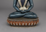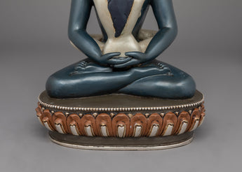 This statue depicts a profound representation of the union of skillful means (upaya) and wisdom (prajna). Samantabhadra represents compassionate action, while Samantabhadri represents the essence of wisdom. Together, they depict the way to ultimate truth and liberation. Their serene expressions demonstrate enlightenment, free of the dualities of existence, while the lotus base on which they sit represents purity and transcendence. This religious sculpture is ideal for personal altars, meditation spaces, or spiritual collections, establishing a profound sense of peace and enlightenment in any environment.