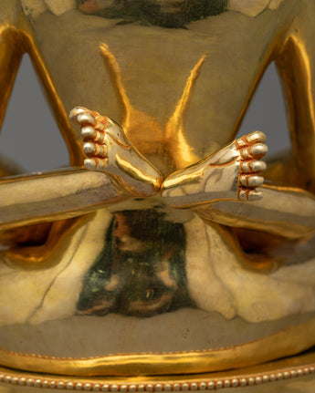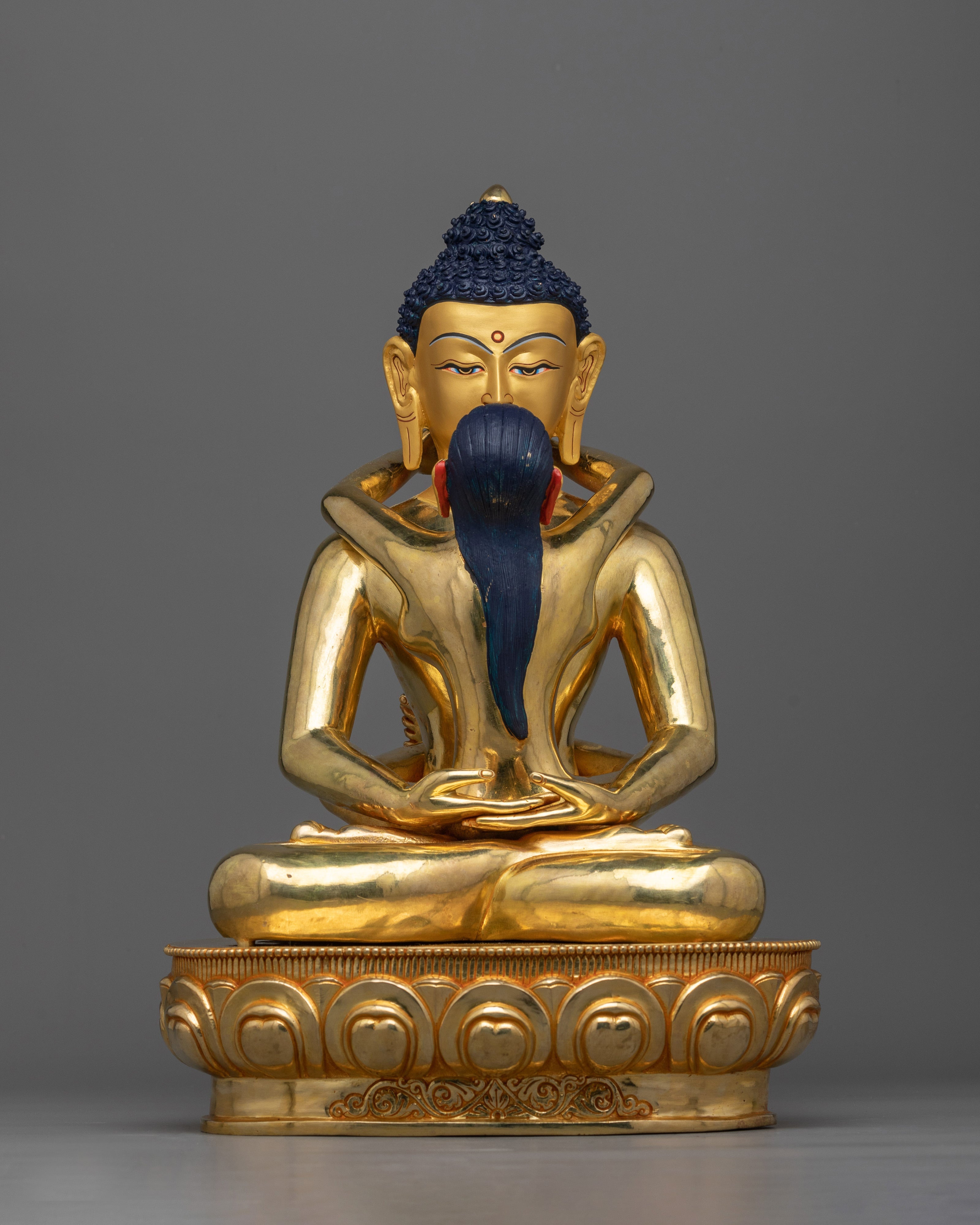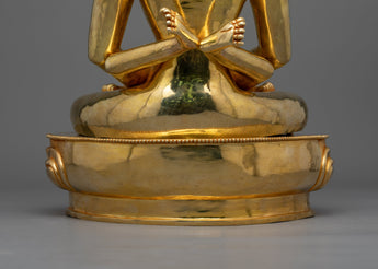 Embrace the spiritual meaning of the Samantabhadra with the Kuntusangmo Statue, a Tibetan Buddhist emblem of divine union and harmony. This work of art radiates transcendence and spiritual ecstasy, measuring 15.6 inches in height and 11 inches in breadth. The sculpture is made of copper and is adorned with layers of 24K gold plating. It exudes a celestial grace and energy. The depiction of Samantabhadra, the primordial Buddha, and his Consort Kuntusangmo in a state of union represents the unbreakable bond between compassion and wisdom. As you begin your spiritual journey toward enlightenment and liberty, ask for their blessings.
