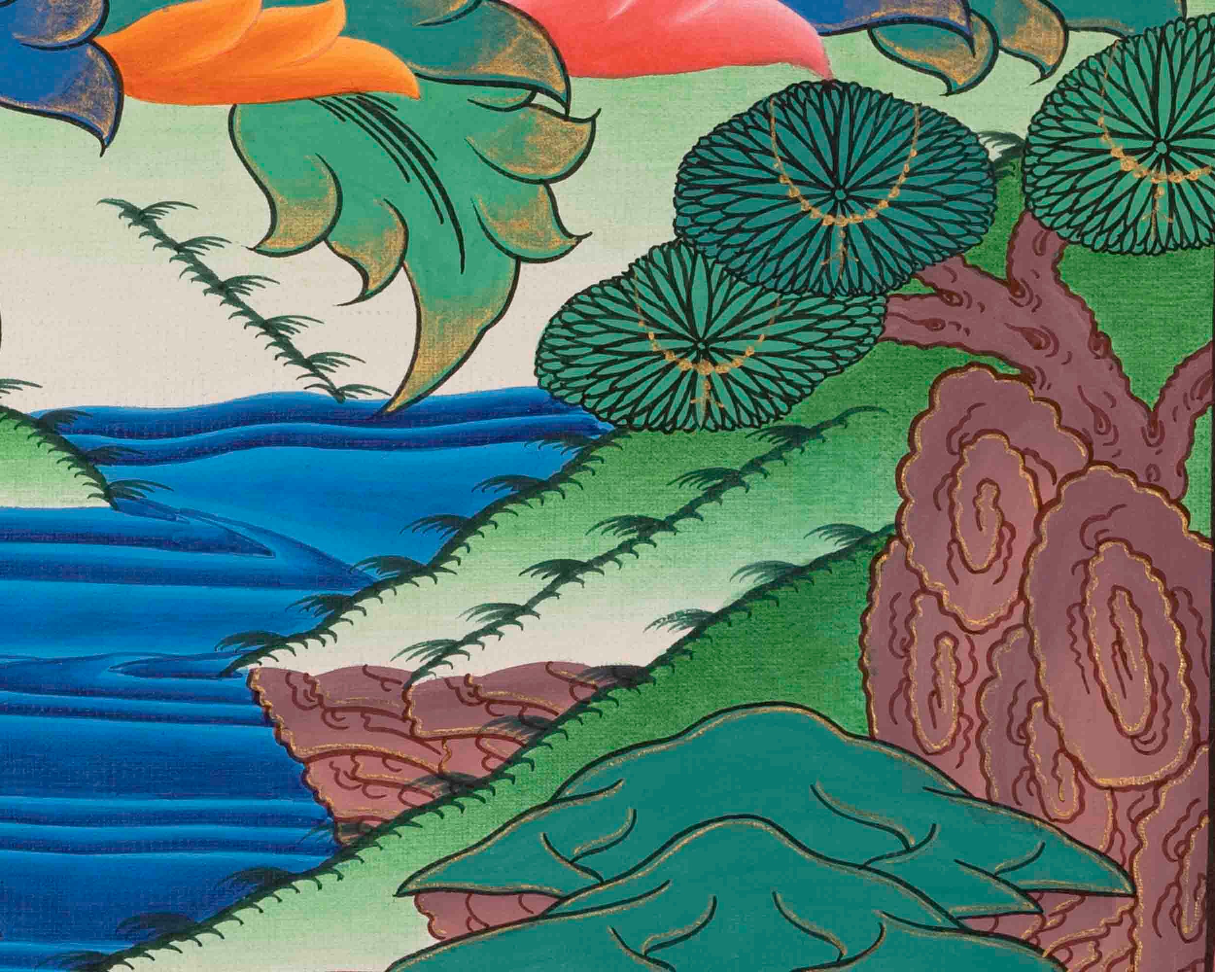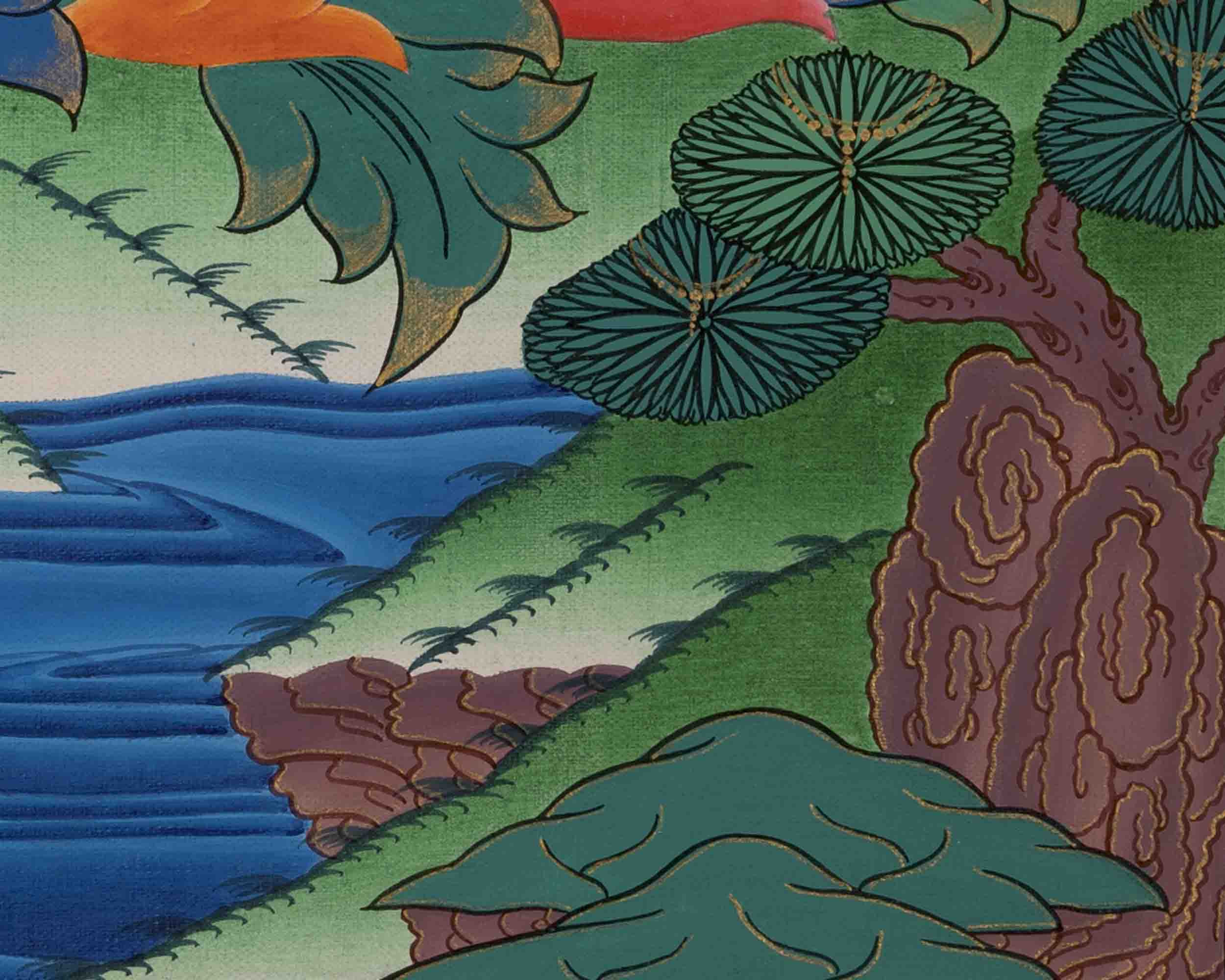 THIS THANGKA IS HAND-PAINTED IN THE TRADITIONAL STYLE BY NEPALI ARTIST AND THE QUALITY IS HIGH