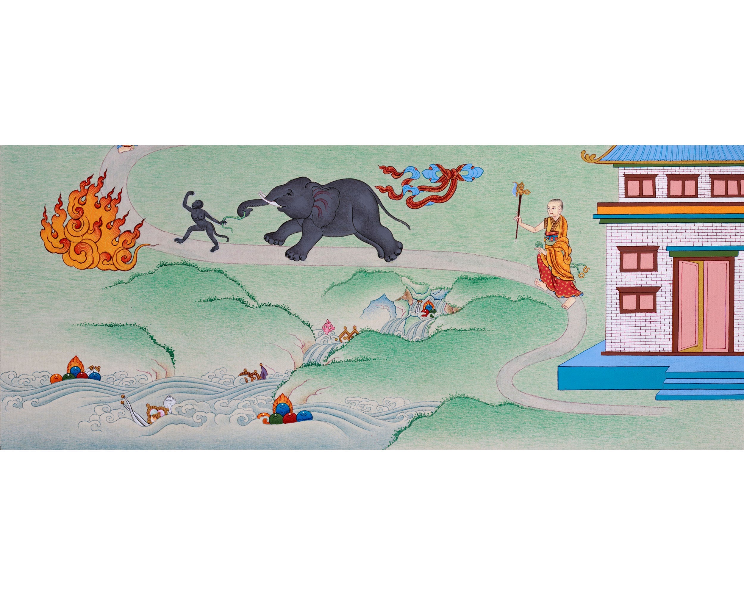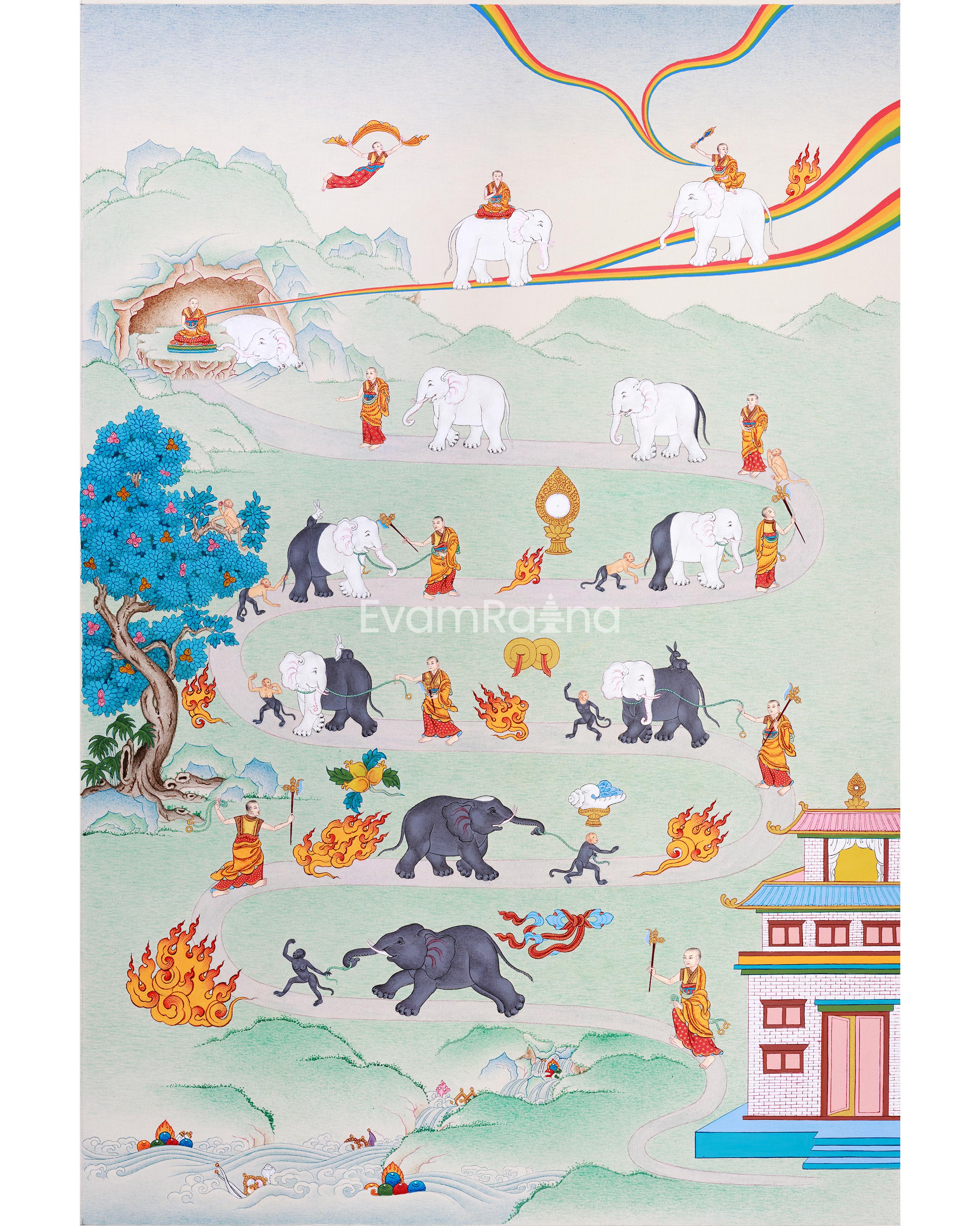 Samatha Meditation Thangka | 9 Stages Of Samatha Practice | Spiritual Artwork