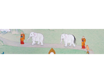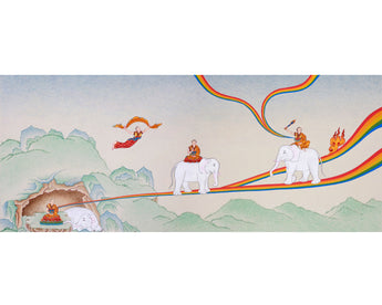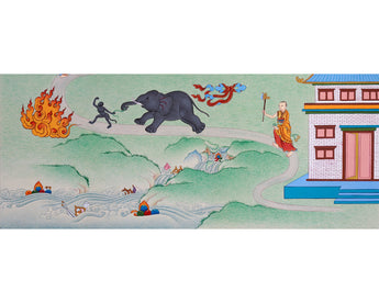 The Samatha Meditation Thangka Art, frequently referred to as the "Path to Inner Peace and Concentration," is an incredible work of spiritual art that captures the spirit of meditation practice. The essence of Samatha meditation, which guides practitioners toward inner calm and steady focus, resides in it. The serene beauty in the thangka invites viewers to go on a journey of meditation and enlightenment. Any meditation room would benefit from the serene atmosphere that the delicate brushstrokes and harmonious colour palette develop. Beyond its artistic merits, this thangka serves as a concrete reminder of the significant benefits of consistent meditation practice as well as a symbolic doorway to inner calm