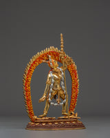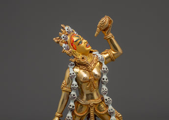 Expertly handcrafted by skilled Nepalese artisans, this statue is made from oxidized copper, adorned with gold plating, and detailed with acrylic colors to bring out its intricate features. The craftsmanship reflects both precision and devotion, ensuring every curve and detail honors her sacred essence. Weighing 1.11kg, it is substantial, perfect for both ritual use and artistic display. Whether you are a practitioner seeking a powerful spiritual tool or a collector of fine Buddhist art, this piece embodies deep cultural heritage and spiritual significance.