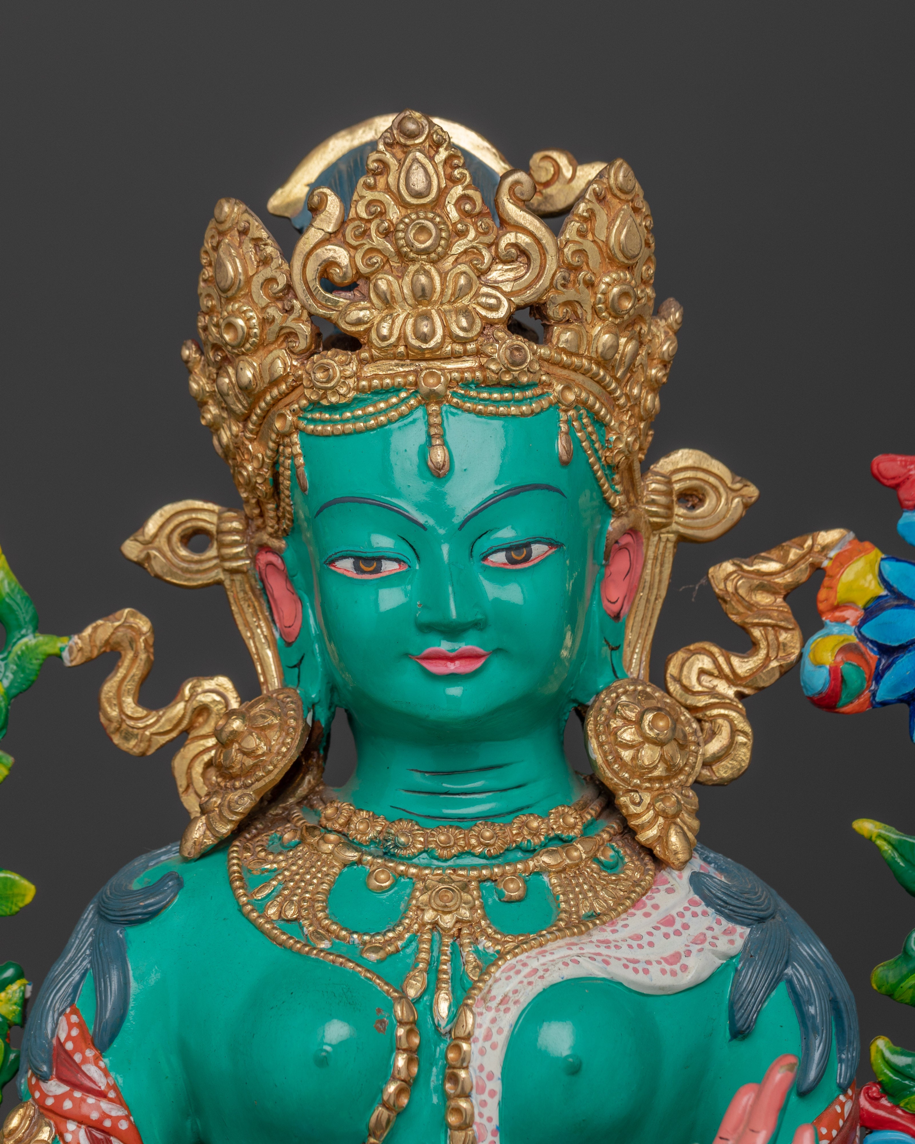 Handcrafted Savior Green Tara | 24K Gold Gilded Sculpture