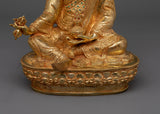The semi-wrathful Guru Rinpoche Tantric Master with a base width of 12" (30.5 cm) and a height of 15.9" (40.5 cm). This handcrafted statue is a great addition to both your home decor and spiritual practice. The statue is crafted, with a 24K gold gilded finish that is enhanced by elaborate acrylic and gold paintwork.