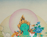 Unleash the spiritual serenity of Green Tara with our exclusive Serene Karma Gadri Thangka. This intricate painting effortlessly captures the compassionate energy of the goddess, radiating peace and protection to all those who possess it. Elevate your space with this mesmerising Thangka of Mother Green Tara.