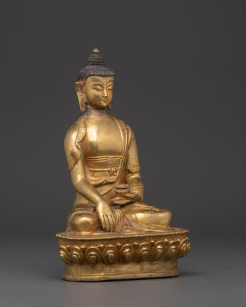 Shakyamuni Buddha Statue for Peace | Handcrafted Gold-Plated Copper Figurine