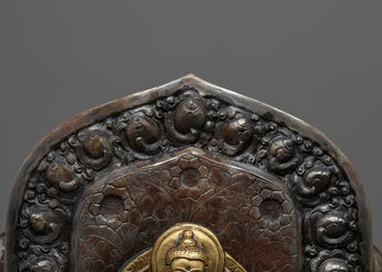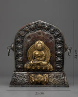 Elevate your spiritual practice with the Shakyamuni Buddha Ghau Box, a blend of strength and grace. Crafted from a combination of iron and brass, it's built to endure the test of time, embodying both durability and elegance.