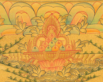 It goes without saying that every detail of a painting has a symbolic meaning. Regardless of your religious affiliation, a thangka can help you on your path to enlightenment, whether you practice Buddhism or have other religious convictions. Thangkas are paintings that depict deities with various iconographic elements and symbolism that encourage meditation on the teachings of the god they depict. Any thangka is intended to aid in the removal of the film of ignorance, which is a significant barrier to the road to enlightenment. The Thangka is revered as a holy item. They promote positivity, spread Buddhism's teachings, bring about peace, harmony, and oneness, and dispel any negative energy that may be there.