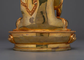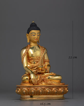 Explore the majesty of our Shakyamuni Buddha Handcrafted Small Statue, a superb example of Nepalese creativity. This statue, which is made of the finest copper and is embellished with 24K gold, is an amazing reminder of the superb skill of Patan artisans. Its spiritual and aesthetic appeal are further enhanced by the delicate details and vivid acrylic and gold paintwork. Enlightened and serene, Shakyamuni Buddha is shown in a composed meditation pose, prepared to impart his knowledge and counsel.