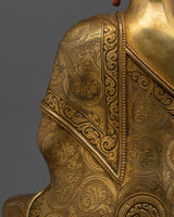 The Shakyamuni Buddha Handmade Antique Touch Statue is superbly constructed from pure copper and features an antique finish and 24K gold gilding, measuring 39.5 cm in height. This statue is a perfect addition to any area looking to instill knowledge and calm since it perfectly depicts the serene and contemplative presence of Shakyamuni Buddha. The deity's delicate features and well-known meditation stance are emphasized by the fine details and brilliant gold finish, signifying his function as the enlightened teacher.