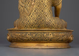 Introducing our Shakyamuni Buddha Handwork Antique Touch statue, which was skillfully made in Patan, Nepal. Crafted from fine copper and adorned with 24K gold, this amazing item epitomizes the illustrious legacy of Nepalese artistry. The antique finish adds a timeless, spiritual depth, and every detail, from Shakyamuni Buddha's placid look to the elaborate robe patterns, showcases extraordinary artisan ability. The Buddha is shown in a serene contemplative pose.