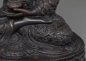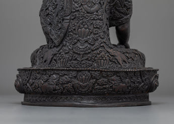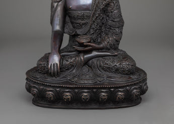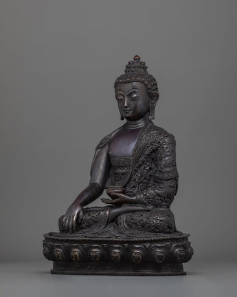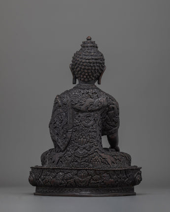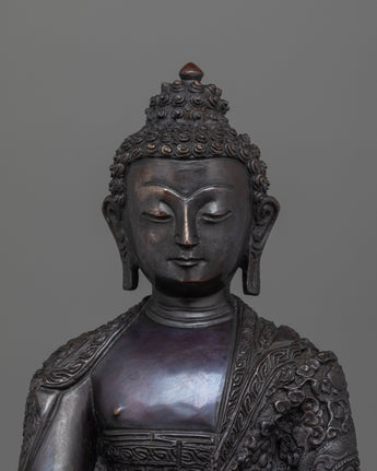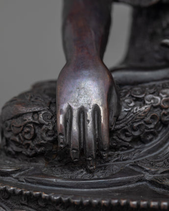 Oxidized Copper Handcrafted Dharma Teacher Shakyamuni Buddha in Bhumisparsha Mudra | Religious Decor