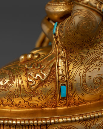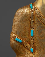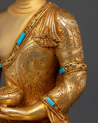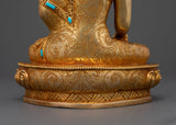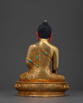 Each hand-carved gemstone is diligently positioned, bringing elegance and spiritual meaning to the statue. The choice of gold not only enhances the statue's aesthetic appeal, but also represents Shakyamuni Buddha's holiness. This statue is appropriate for individuals looking for art that gives a sense of calm and spiritual enrichment to their surroundings, making it an excellent addition to homes or meditation areas.