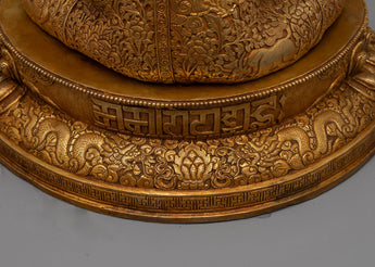 The Shakyamuni Buddha Sage of Buddhism statue will provide you a deep sense of spiritual peace. This lovely statue, standing 17.1 inches tall and weighing 9.18 kg, radiates grace and peace. It is made of 24K gold-gilded copper and is decorated with elaborate paintings in gold and acrylic that perfectly convey the awakened essence of Shakyamuni Buddha. Its calm demeanor and honorable stance provide as a source of motivation for anyone looking for knowledge and insight.