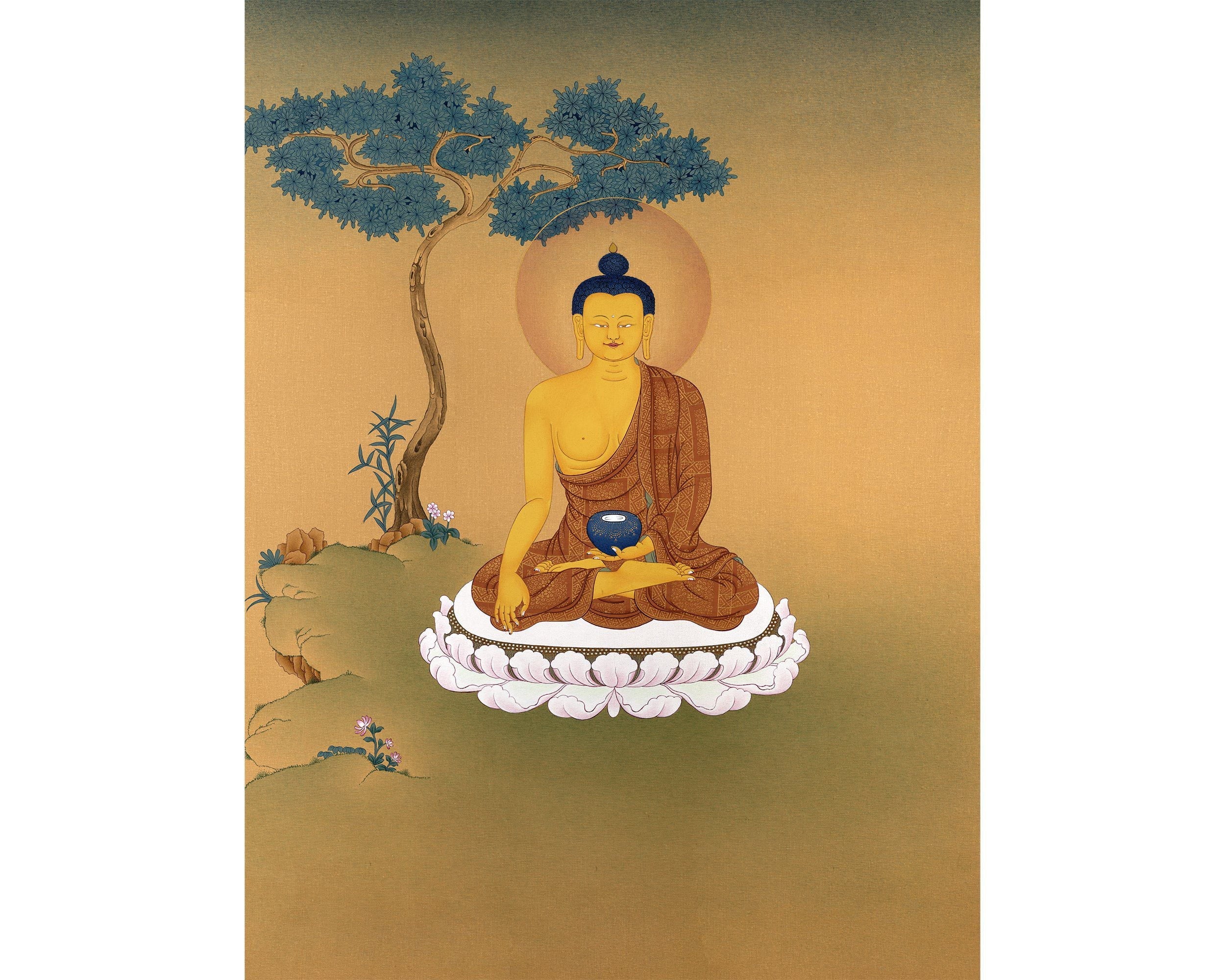 This Tibetan Thangka of Shakyamuni Buddha can be your perfect thangka. To take and carry along where ever you are traveling. The color play in the thangka is harmoniously balanced to create soothing pleasure while visualizing it.