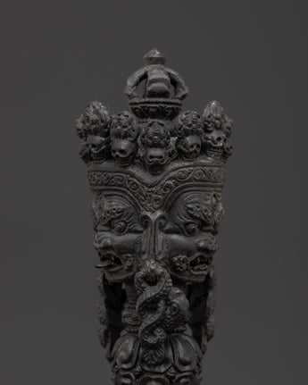 This Saligram Phurba is more than just a ceremonial instrument; it is a symbolic and energetic weapon for dispelling negativity, breaking through illusions, and destroying internal obstructions. The dagger weighs 0.54kg and is perfect for ceremonial use, altar display, or focused meditation. The triple-bladed shape depicts the unity of body, speech, and mind, which are all fundamental principles in Vajrayana practice, and it channels transformational spiritual power via purpose and devotion.