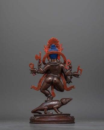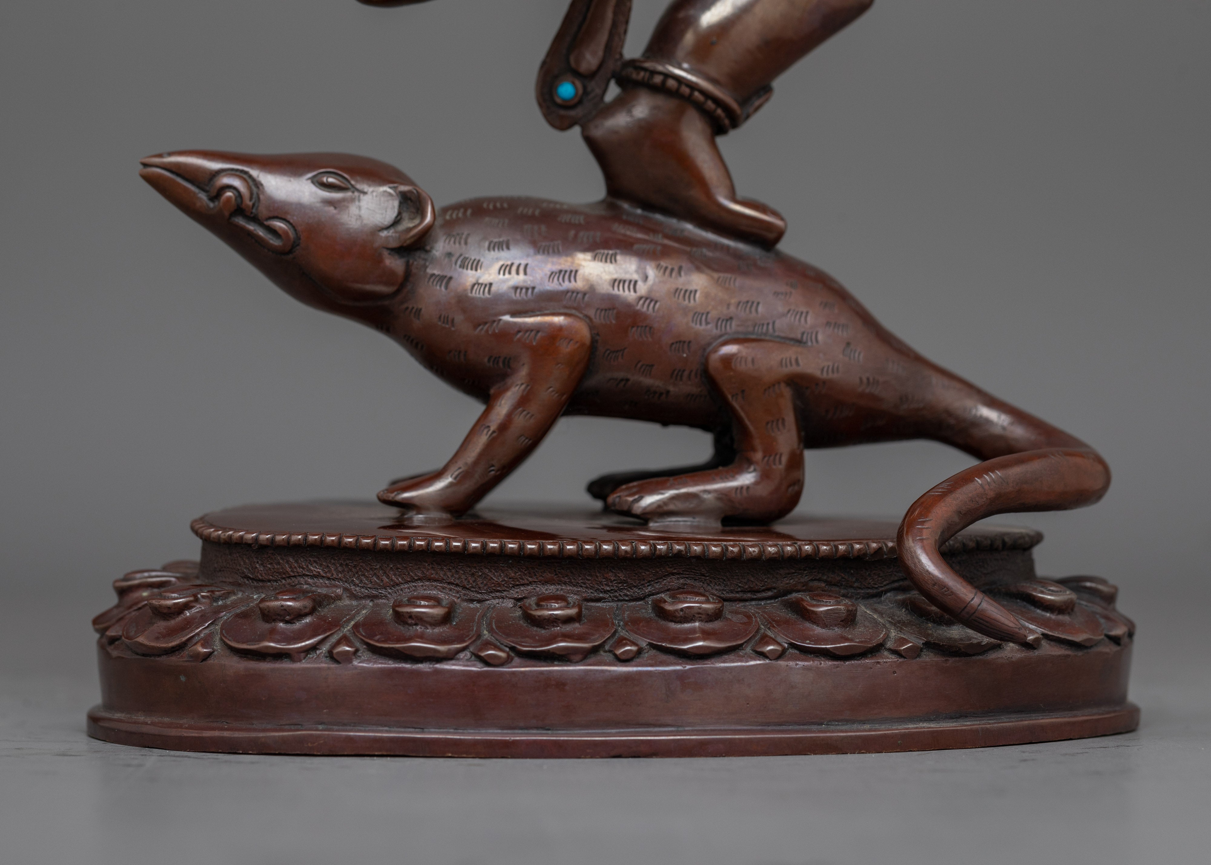 Embrace the blessings of prosperity and knowledge with the shree-ganesh-38cm-oxidized statue, a hefty artwork towering 38 cm tall and intended to inspire reverence and devotion. This statue is made of high-quality oxidized copper, giving it a distinct, antique appearance that highlights the fine details of Ganesh's magnificent figure and traditional qualities such as the modak (sweet) in his palm and the mouse at his feet, his vahana.